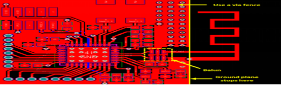 在偶極天線饋線上使用時(shí),將平衡不平衡變壓器放置在接地平面區(qū)域的邊緣,并將平衡輸出直接路由到天線。這通常在倒F天線或其他微帶天線上完成。換個(gè)方向,例如使用單極天線或同軸連接(即帶有U.FL連接器的不平衡天線),無(wú)論如何都應(yīng)在接地平面上進(jìn)行所有操作。為了提供高隔離度,您可以在饋線周圍以及天線區(qū)域和其他電路之間放置接地的保護(hù)通孔。