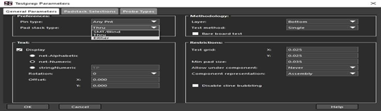 Allegro PCB Designer的測試點參數(shù)菜單。